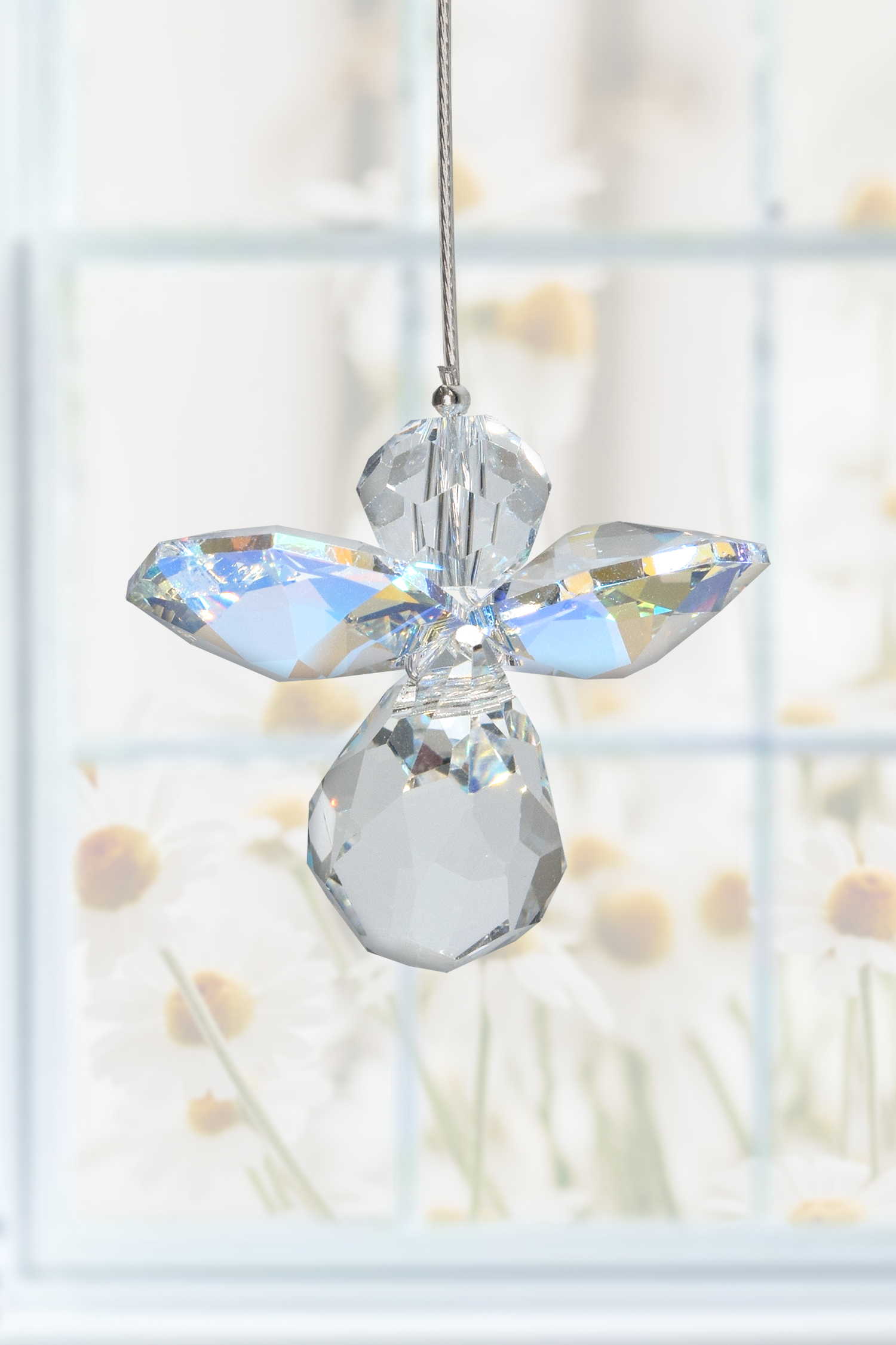 We all need a guardian angel in our life, especially one that catches the light and dazzles as our delightful Aurora Borealis angel does. This pure and simple guardian angel decoration has been expertly made in the UK using only the finest crystals. The entire range is perfect for hanging on a counter-top display stand for maximum impact.