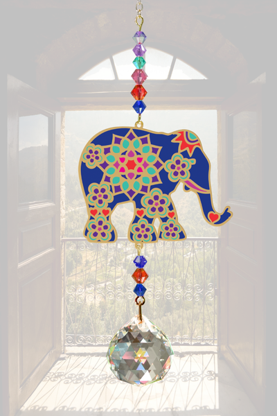Symbolising wisdom, strength, and good fortune, our Indian Elephant Crystal Dream suncatcher has enduring appeal. Handmade with a richly colourful gold and stained-glass effect, beautiful bead runs and a rainbow-making 20mm ball, this bestselling design brings a touch of exotic charm and positive energy to any display. A thoughtful gift choice, it appeals to both elephant motif collectors and those searching for a gift with global charm.