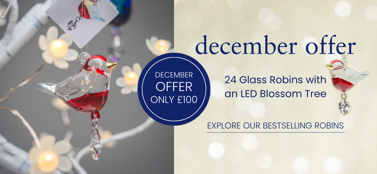 Top of the charts, is our handmade, handpainted glass Robin, embellished with 24 carat gold paint and a 14mm crystal heart. Robins are often seen as messengers of happiness and renewal and this favourite of our Pretty Little Birds collection will bring sunlight and rainbows to all who are lucky enough to own one.