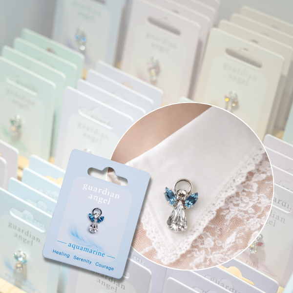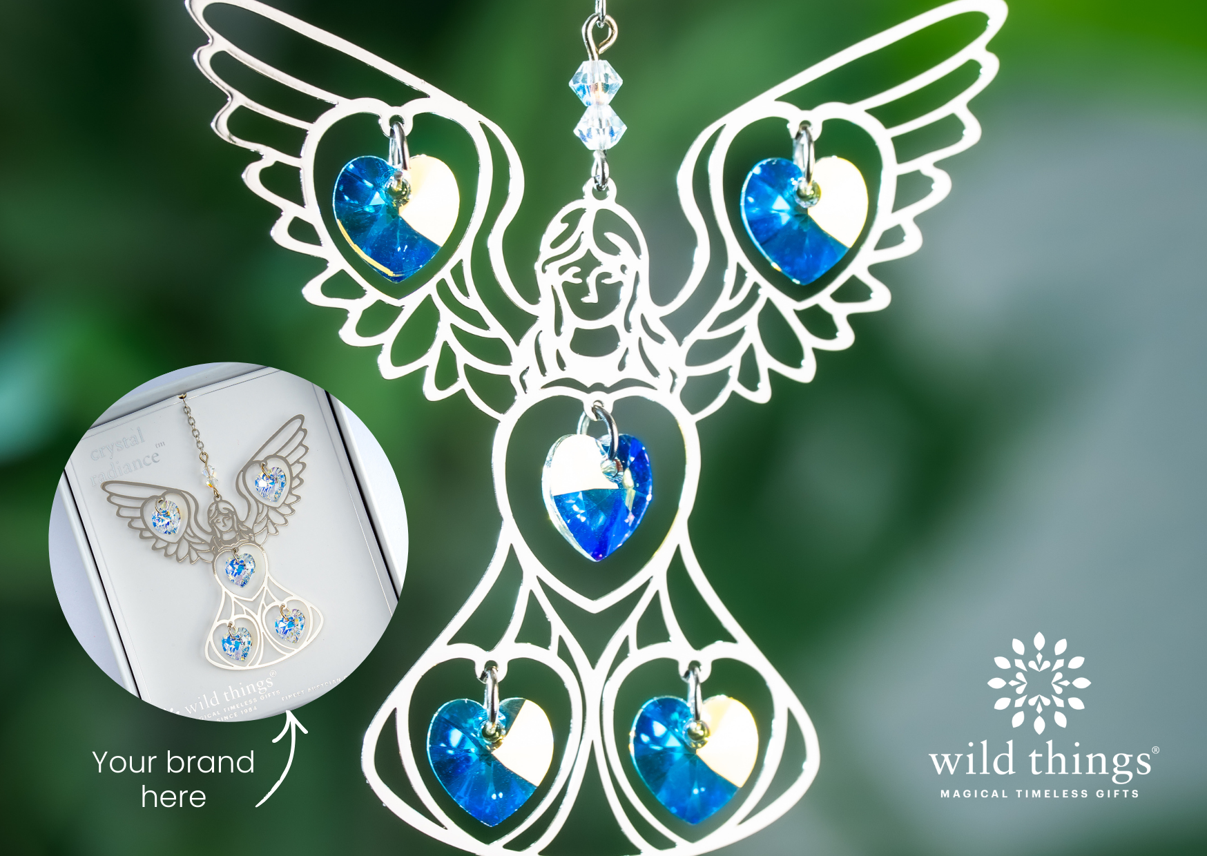 Among the options available are some of our bestselling designs, including boxed, gift-ready Crystal Radiance Angels (8280-ANG-AB) and our carded Guardian Angel (1080) or Pretty Little Pins (1081), supplied with a bamboo stand designed to be displayed beautifully at or near the point of sale. Both products are consistently strong sellers and demonstrate how easily our designs can be incorporated into a branded retail collection.
